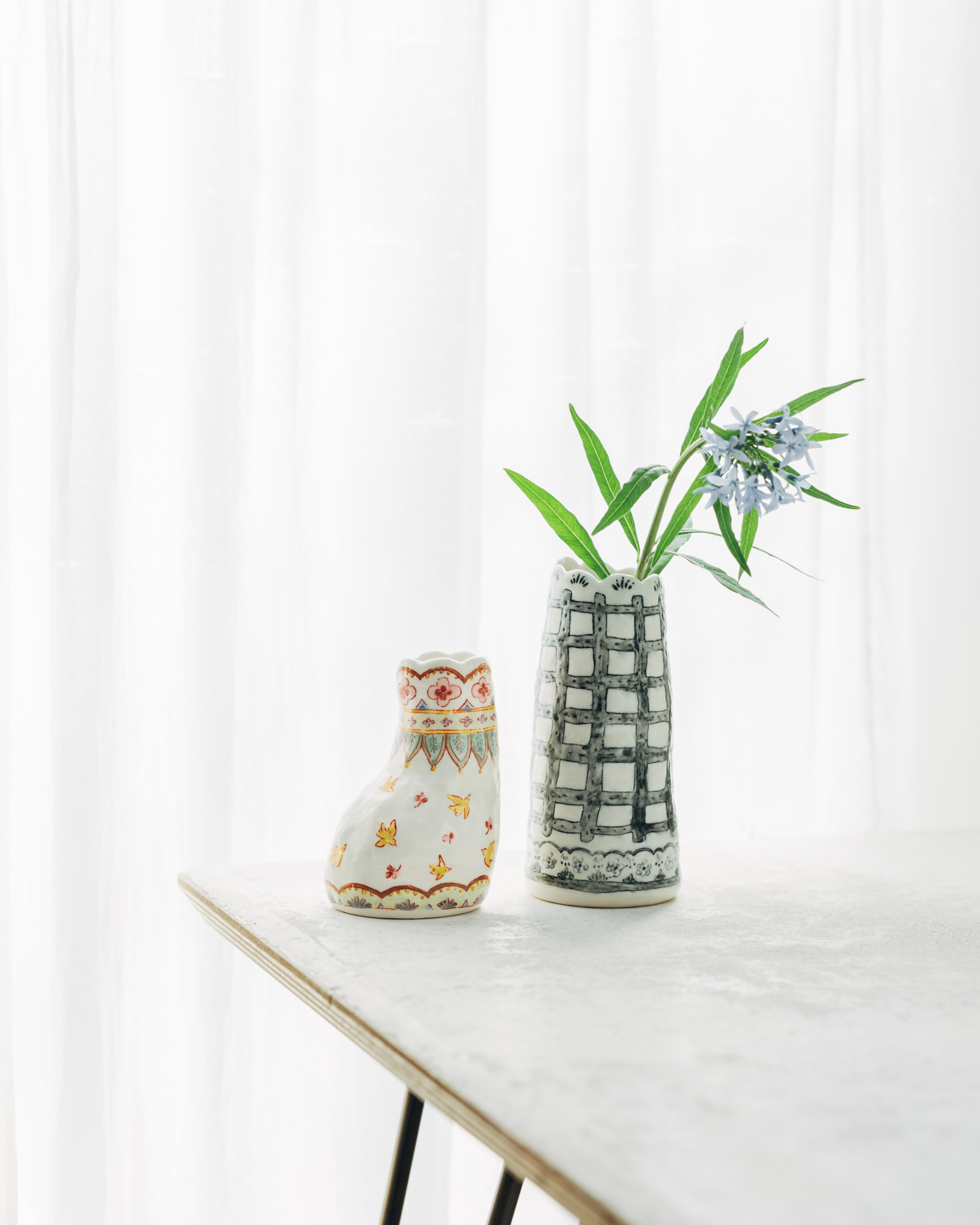 今回は、華やかで楽しい表情の花器もご覧いただけます。
