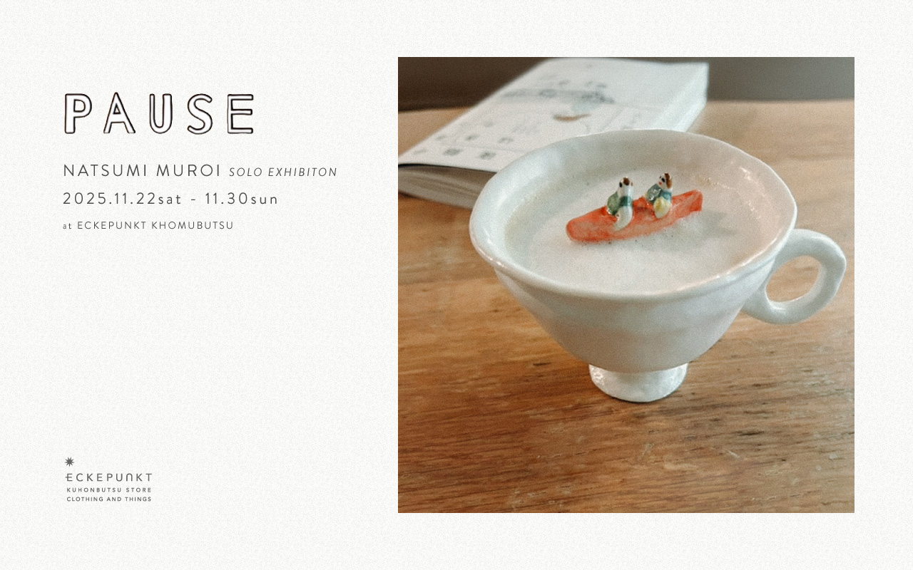 EXHIBITION エッケプンクトでは毎月、作家の個展や企画展などが開催されています。 年間スケジュールはこちら 2025.11.8 室井夏実 個展 『PAUSE』 2025.10.21 kitona POP UP EVENT 2025.10.8 【越前和紙】JAPAN TRADITIONAL CRAFTS WEEK2025 2025.10.2 芦田尚美 磁器展/AMETSUCHI 三彩 2025.09.17 秋の食卓展 2025 2025.09.1 “cue” Arts and Crafts Fair vol.2 2025.08.24 深谷望 個展 2025 2025.08.4 石と手仕事展 Stone & Handcrafts 2025 2025.06.10 Lao unexpected 2025 2025.06.3 Rebmob木工 展 「心音」 2025.05.2 空間のしつらえ展 2025 2025.04.6 gochisou : fair 2025 1 / 712345...»最後 »