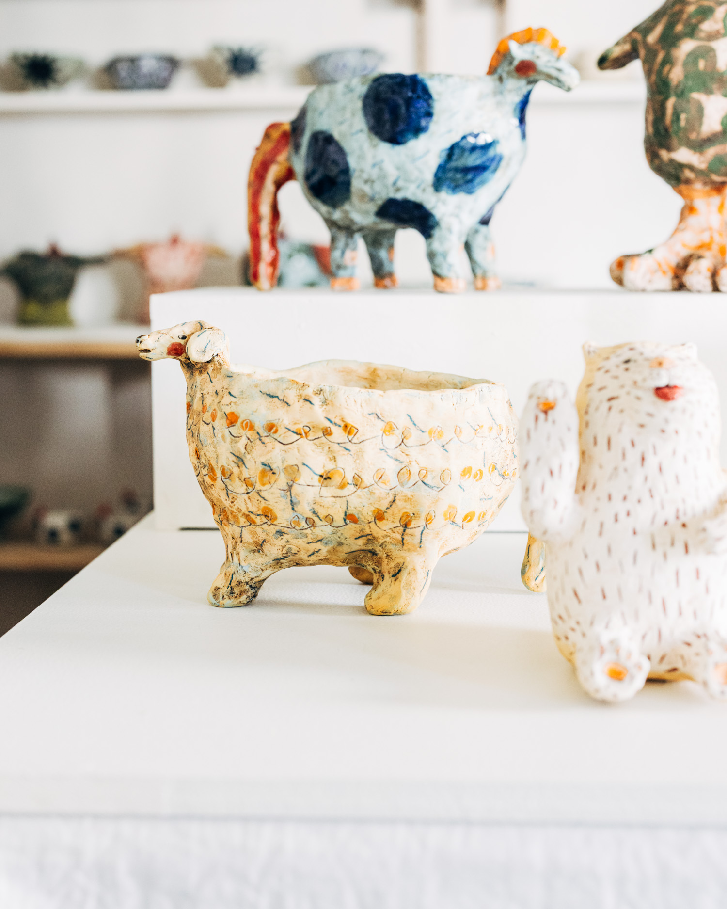 可愛すぎずすますぎない、深みと愛らしさのある佇まいの作品を制作。