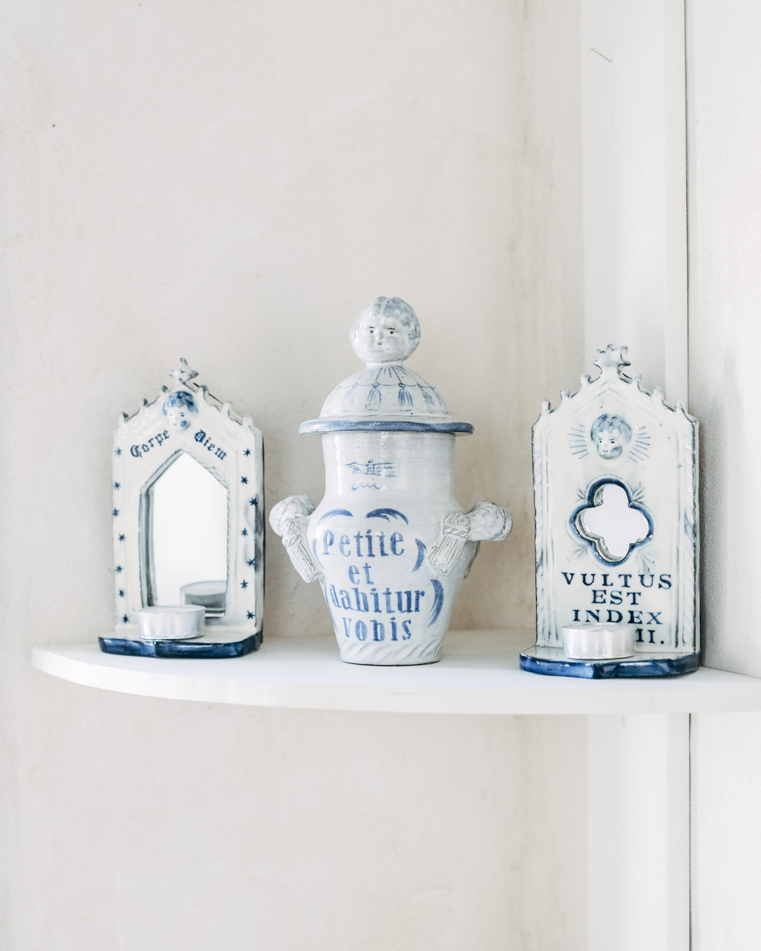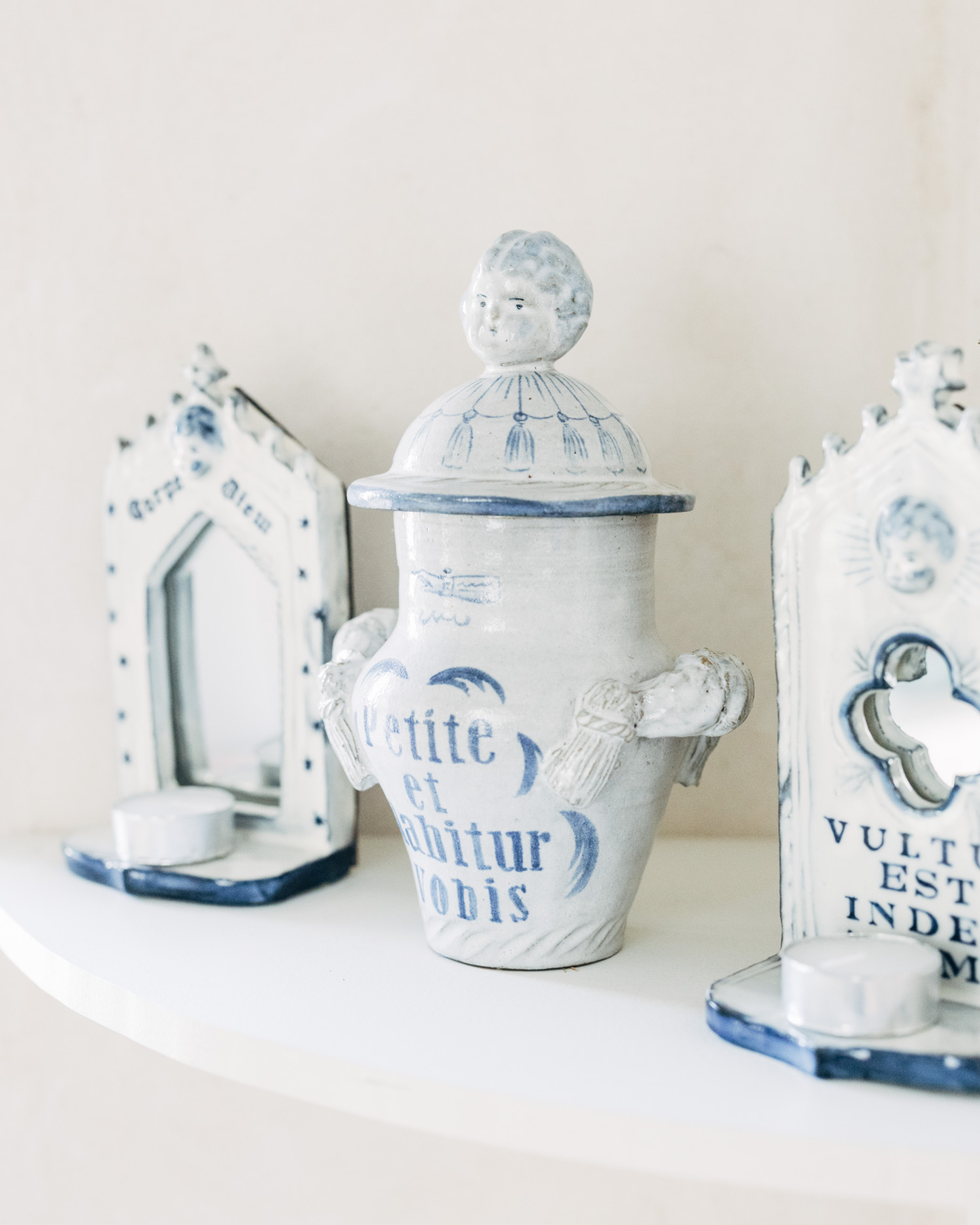 宗教的なモチーフを起点に、祈りや痕跡を陶のかたちにしています