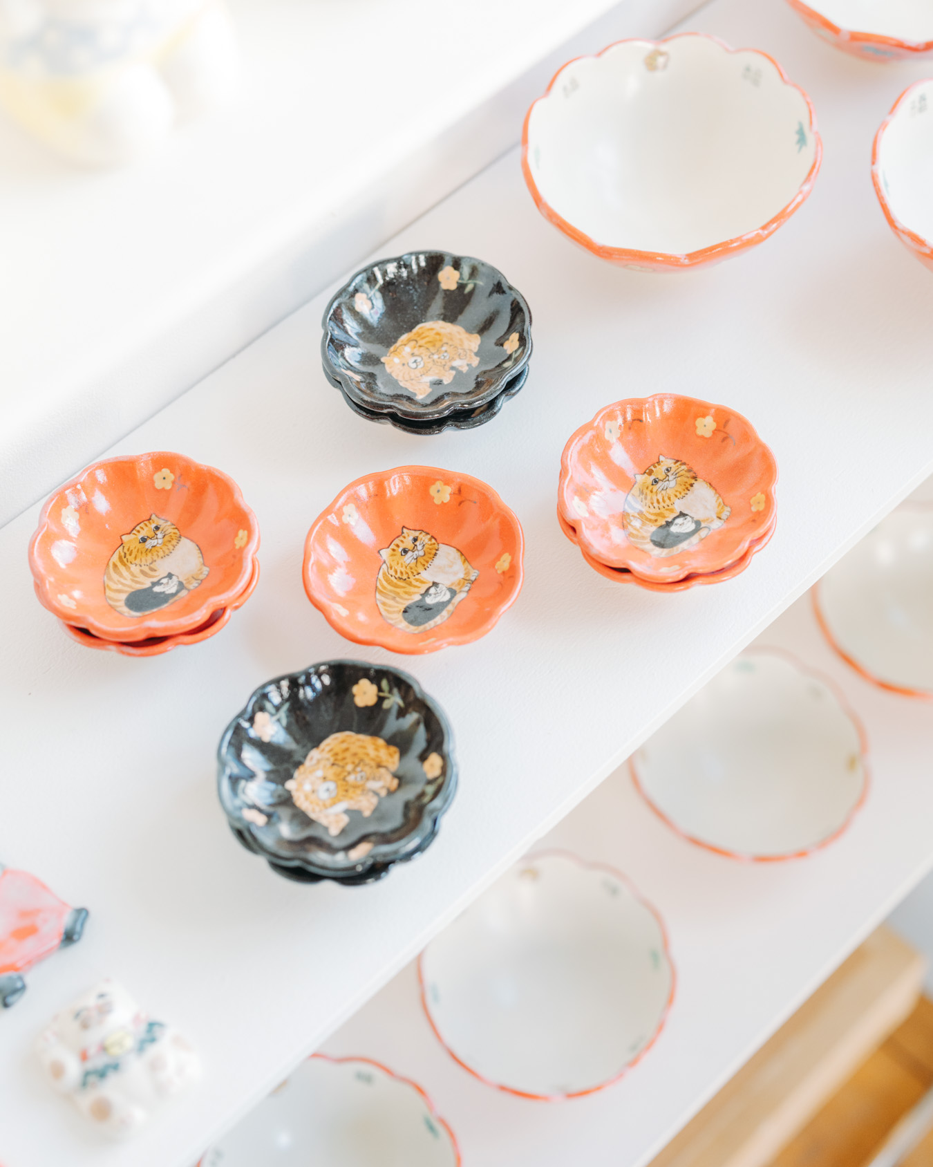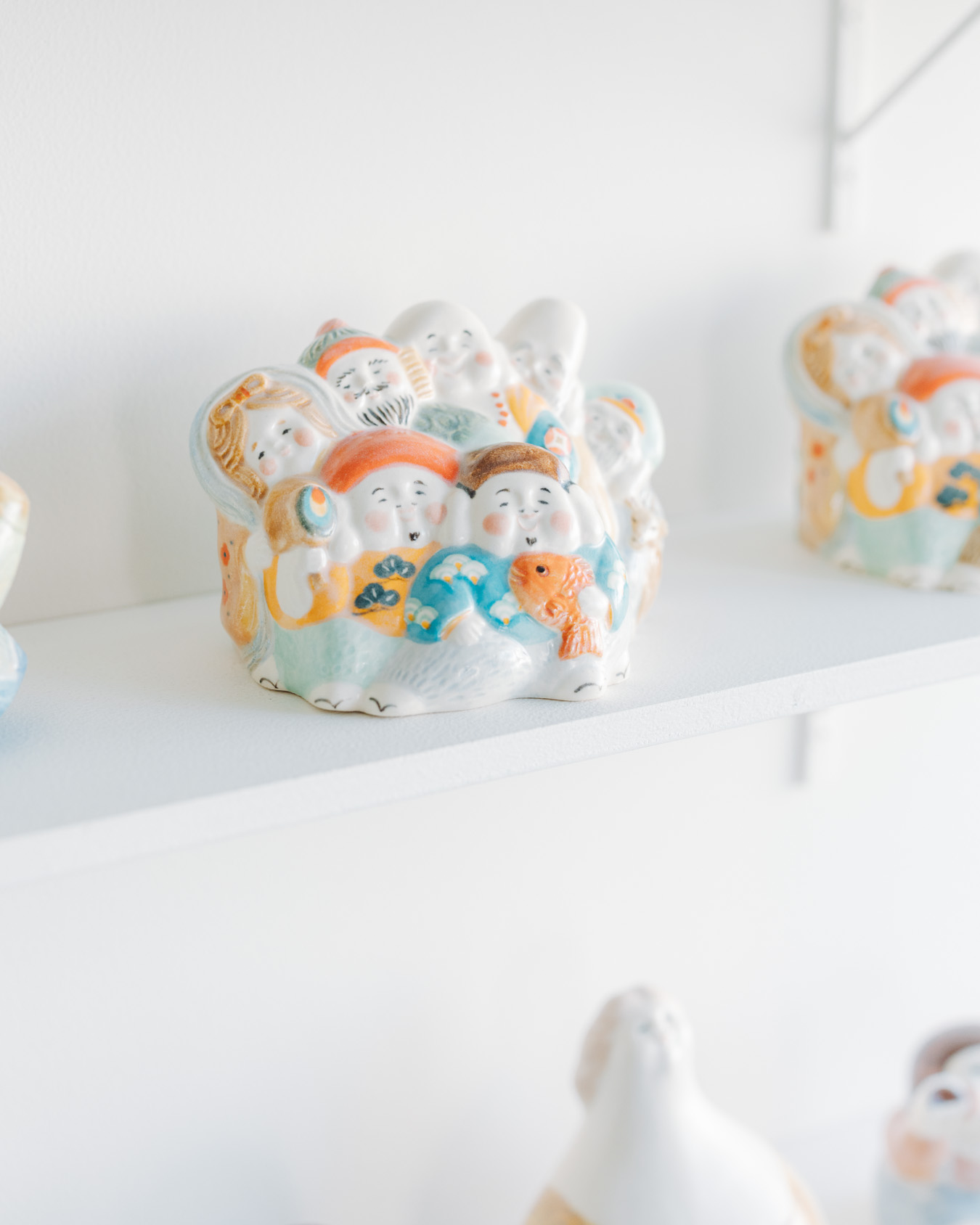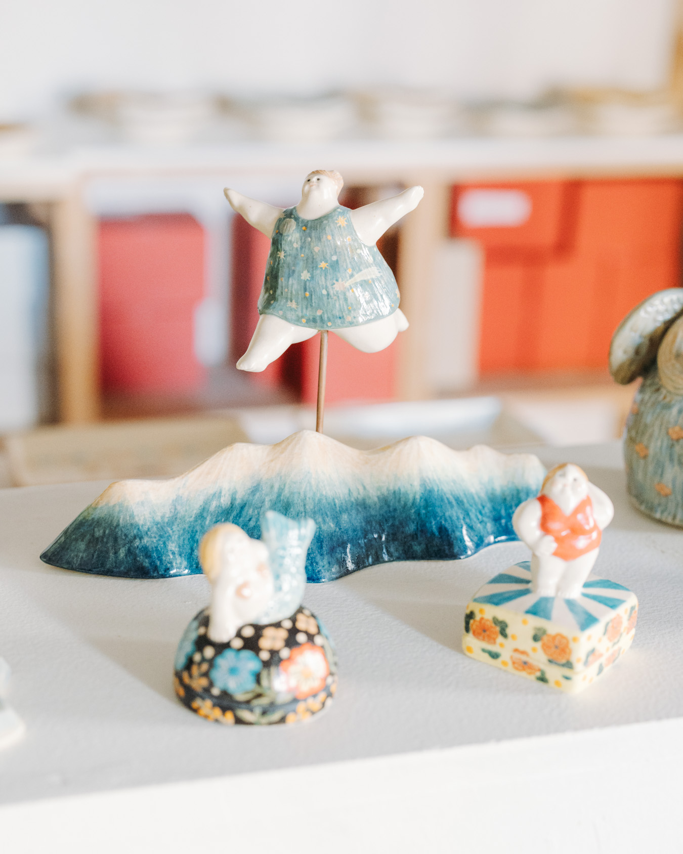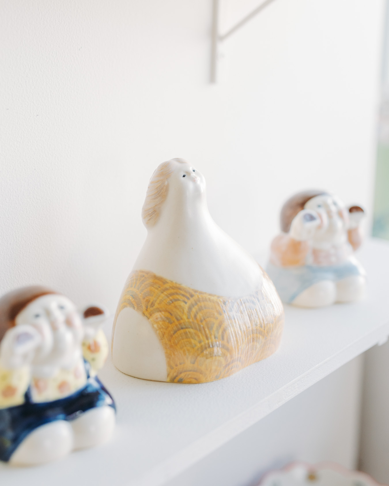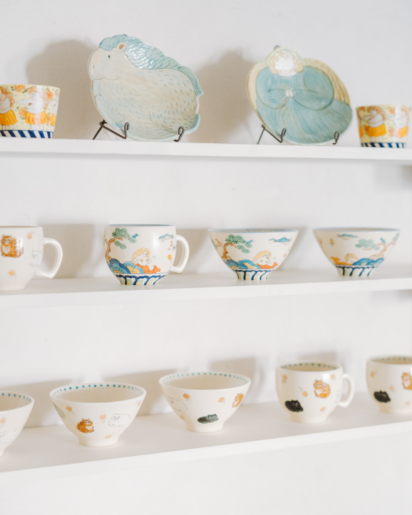 やさしさとユーモアにあふれたオブジェ、お皿、小箱などが並び、