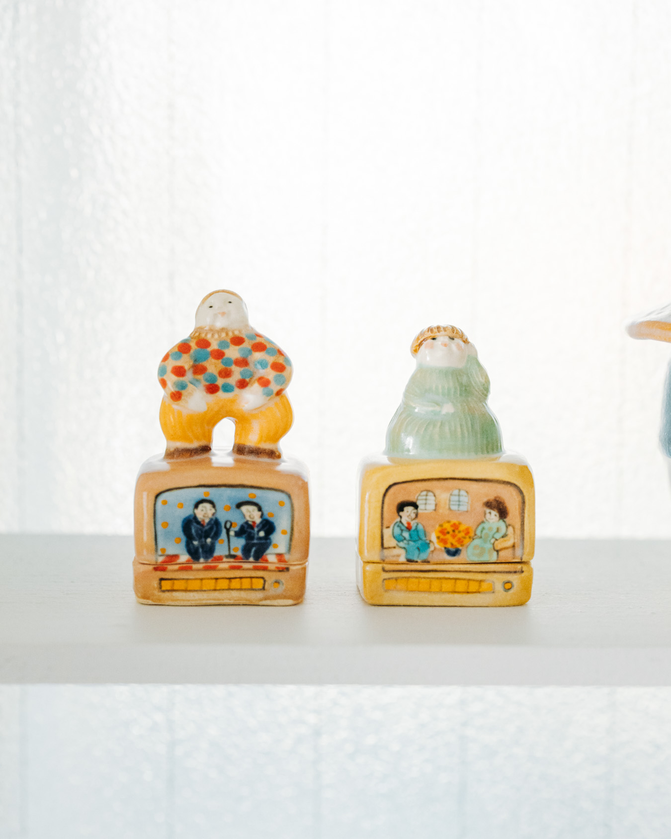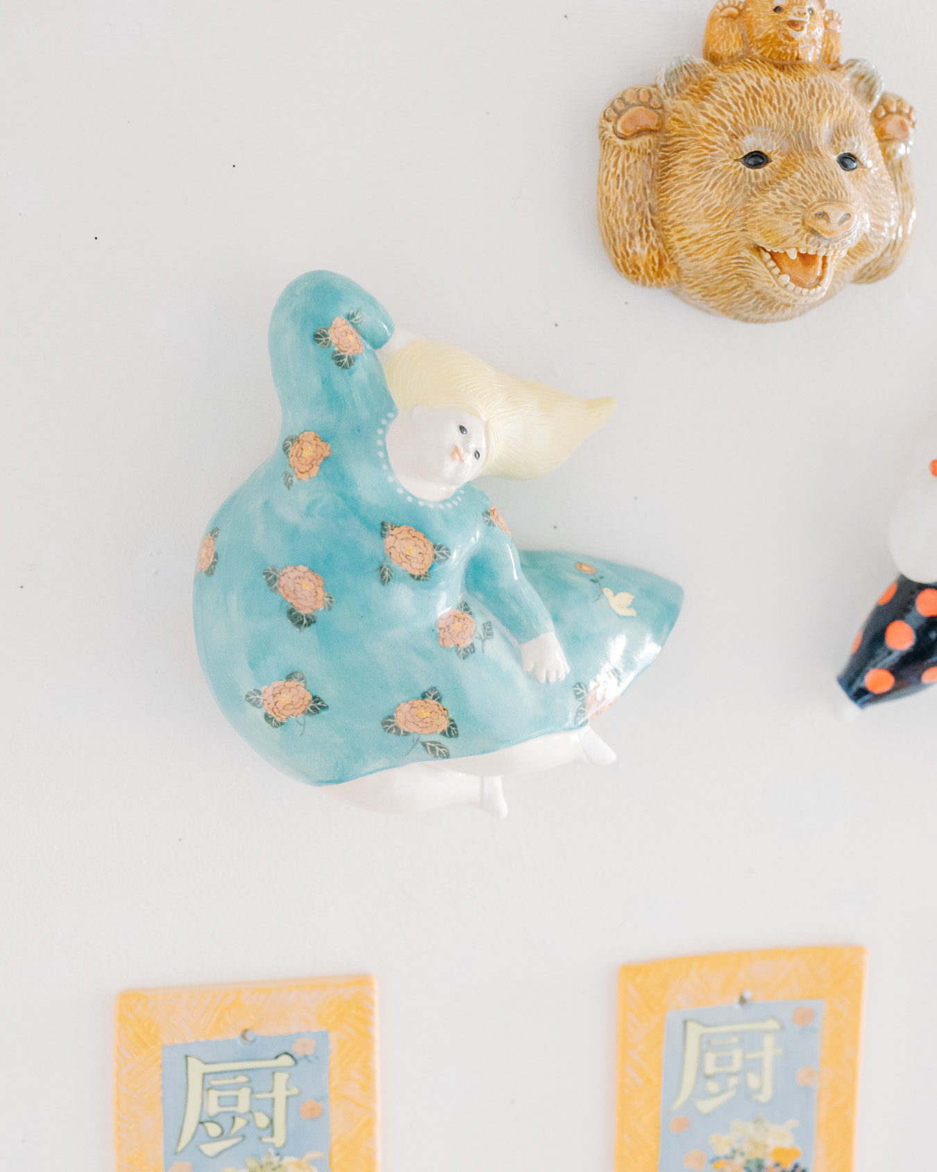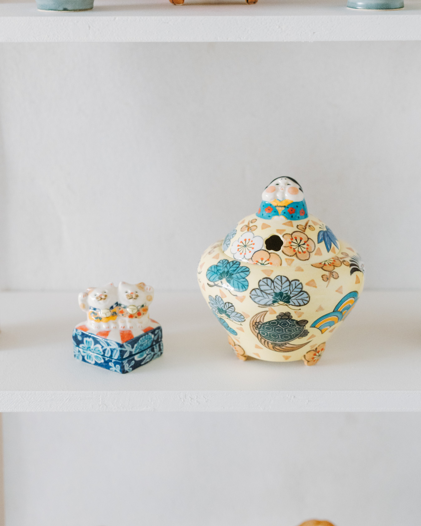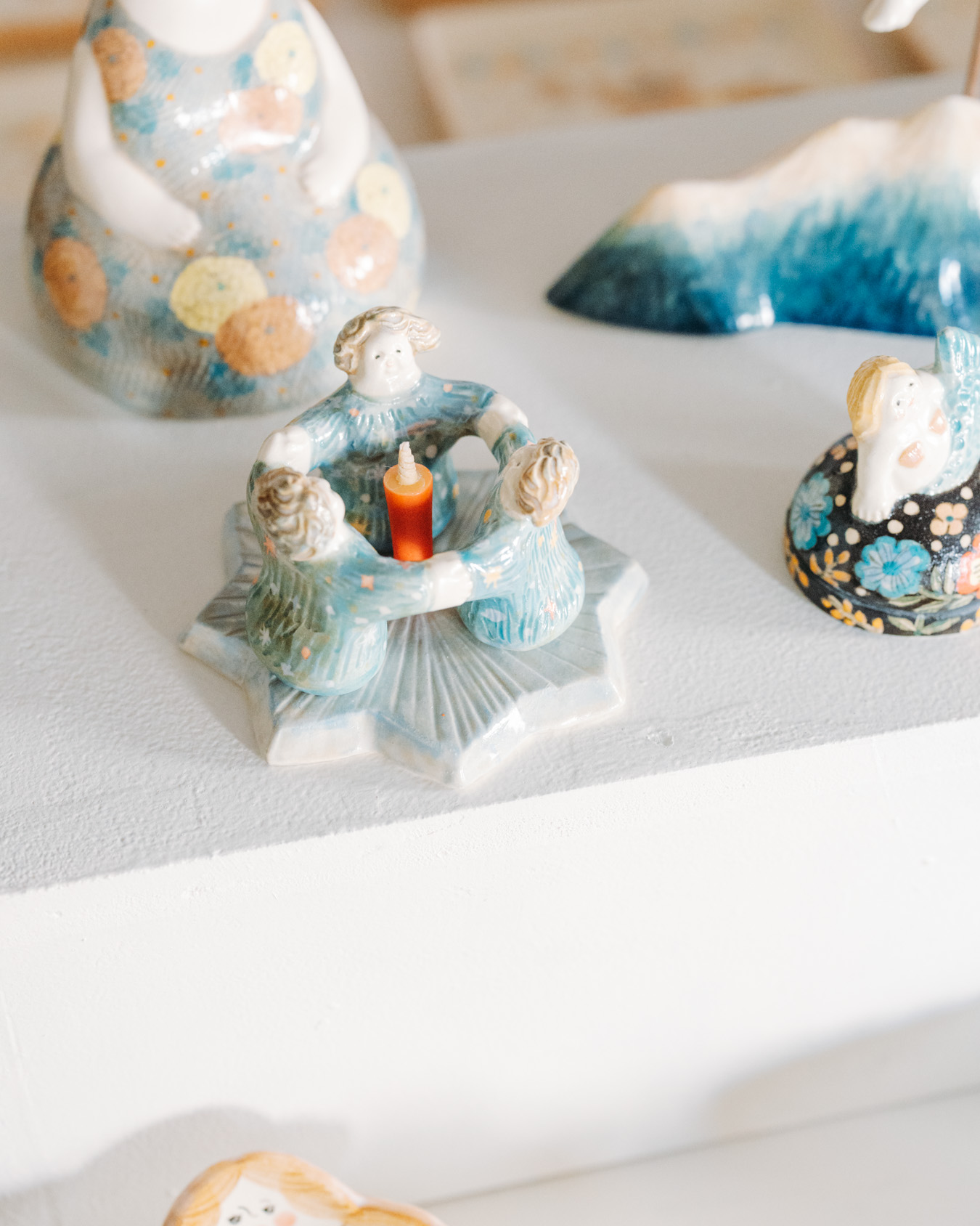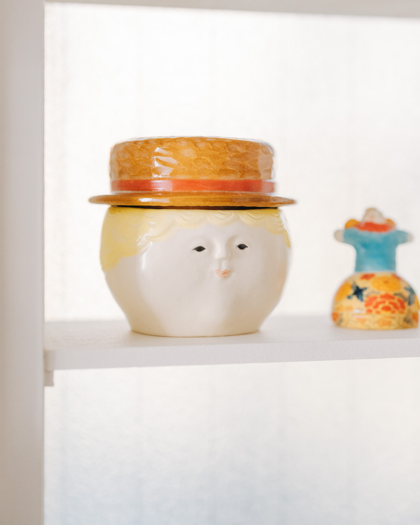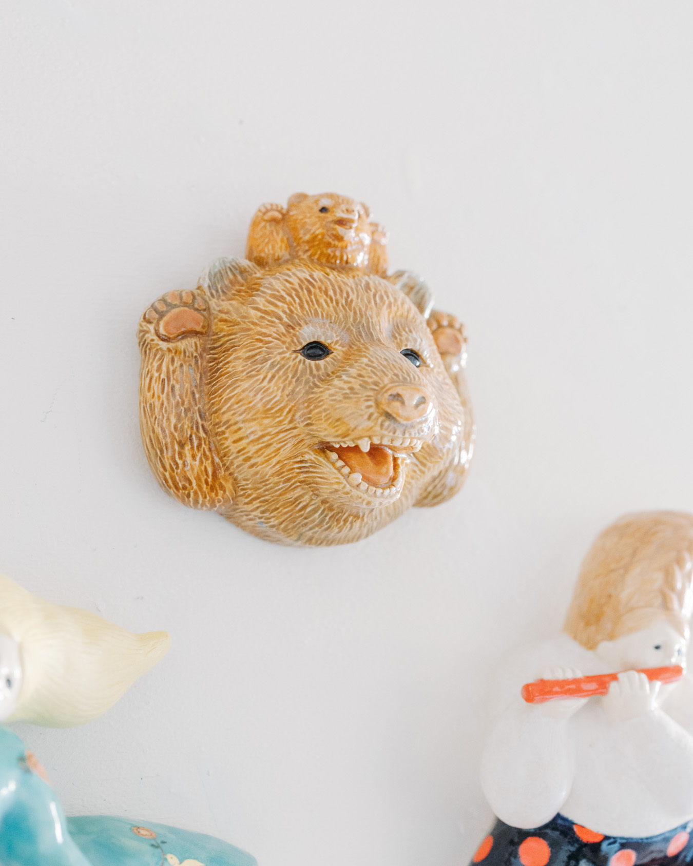 やさしさとユーモアにあふれたオブジェ、お皿、小箱などが並び、