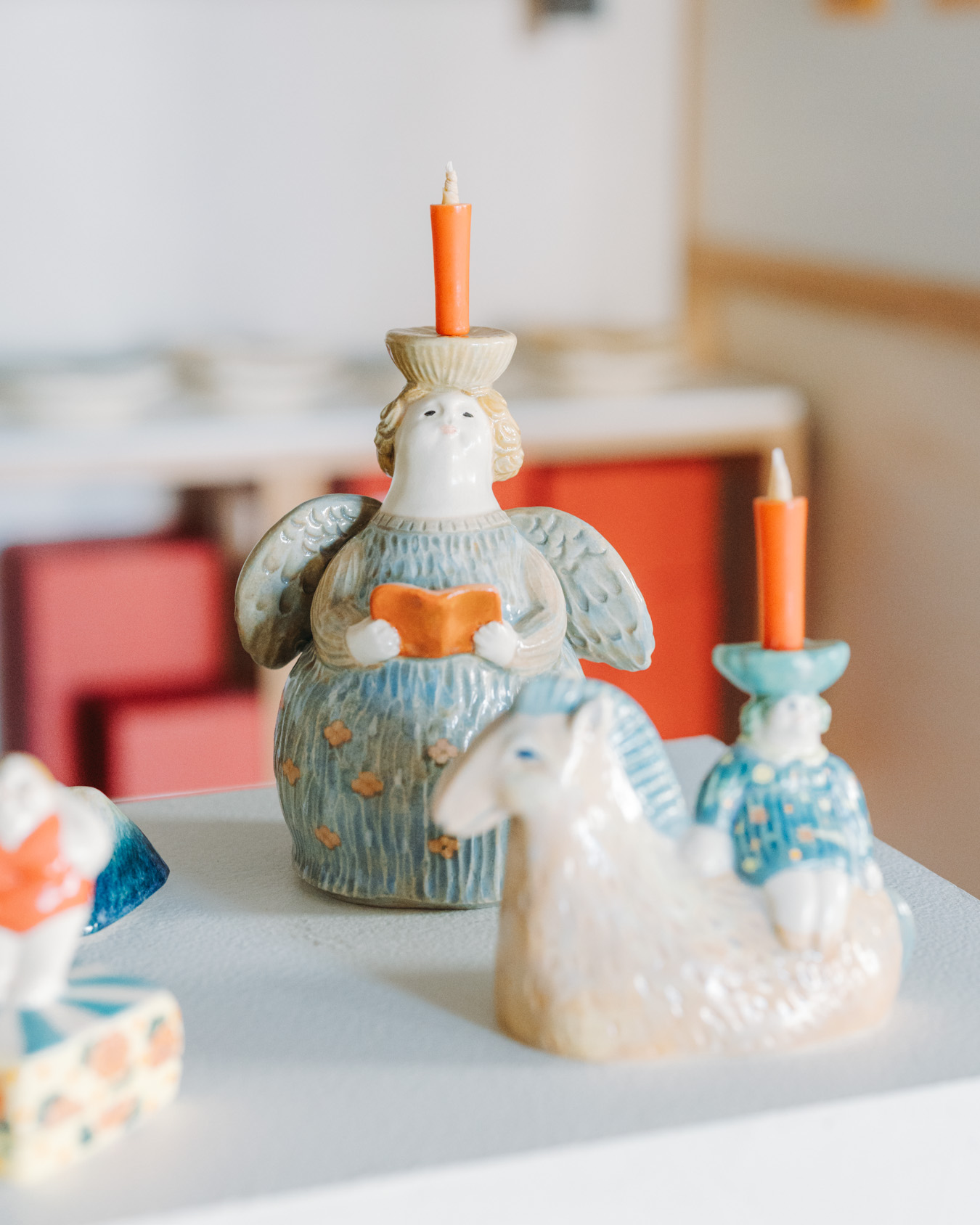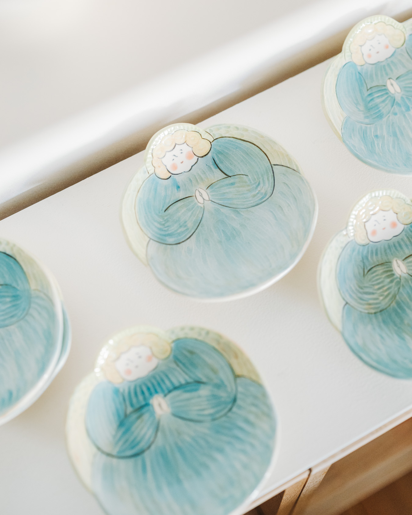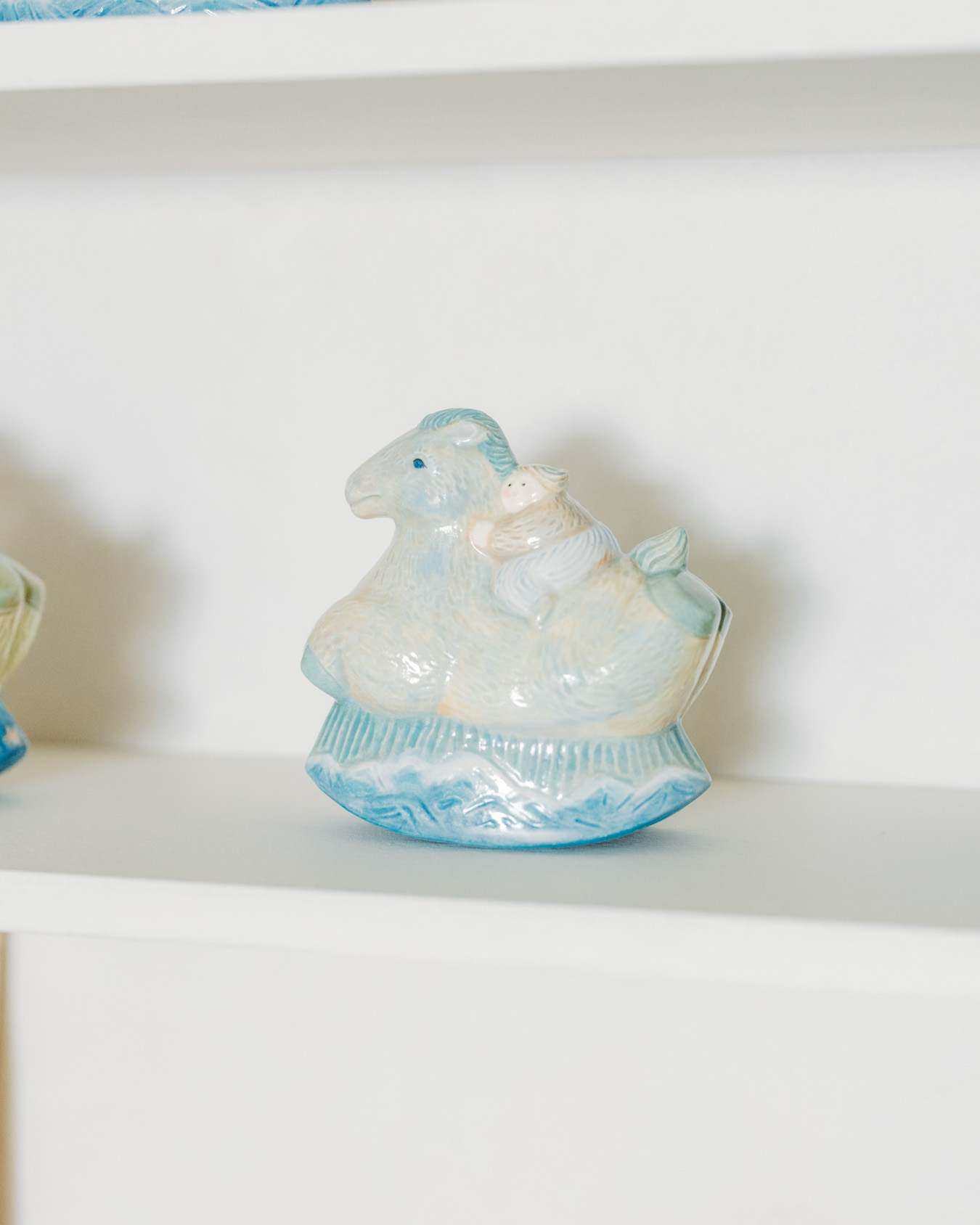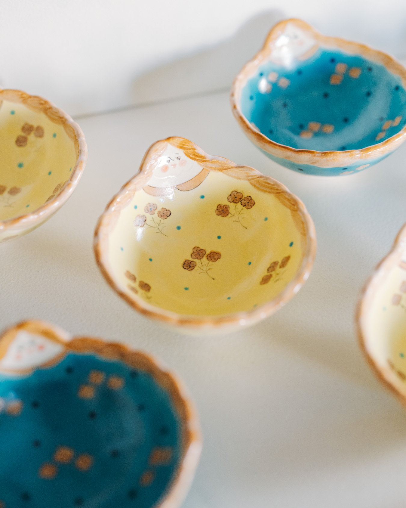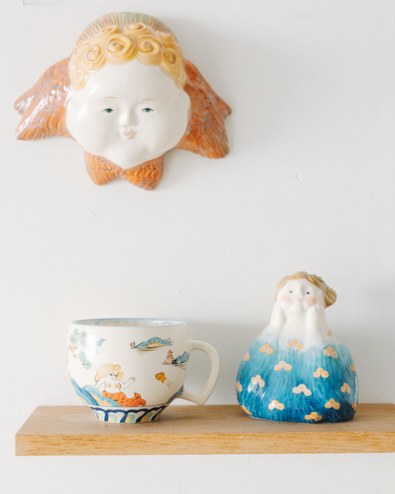 やさしさとユーモアにあふれたオブジェ、お皿、小箱などが並び、