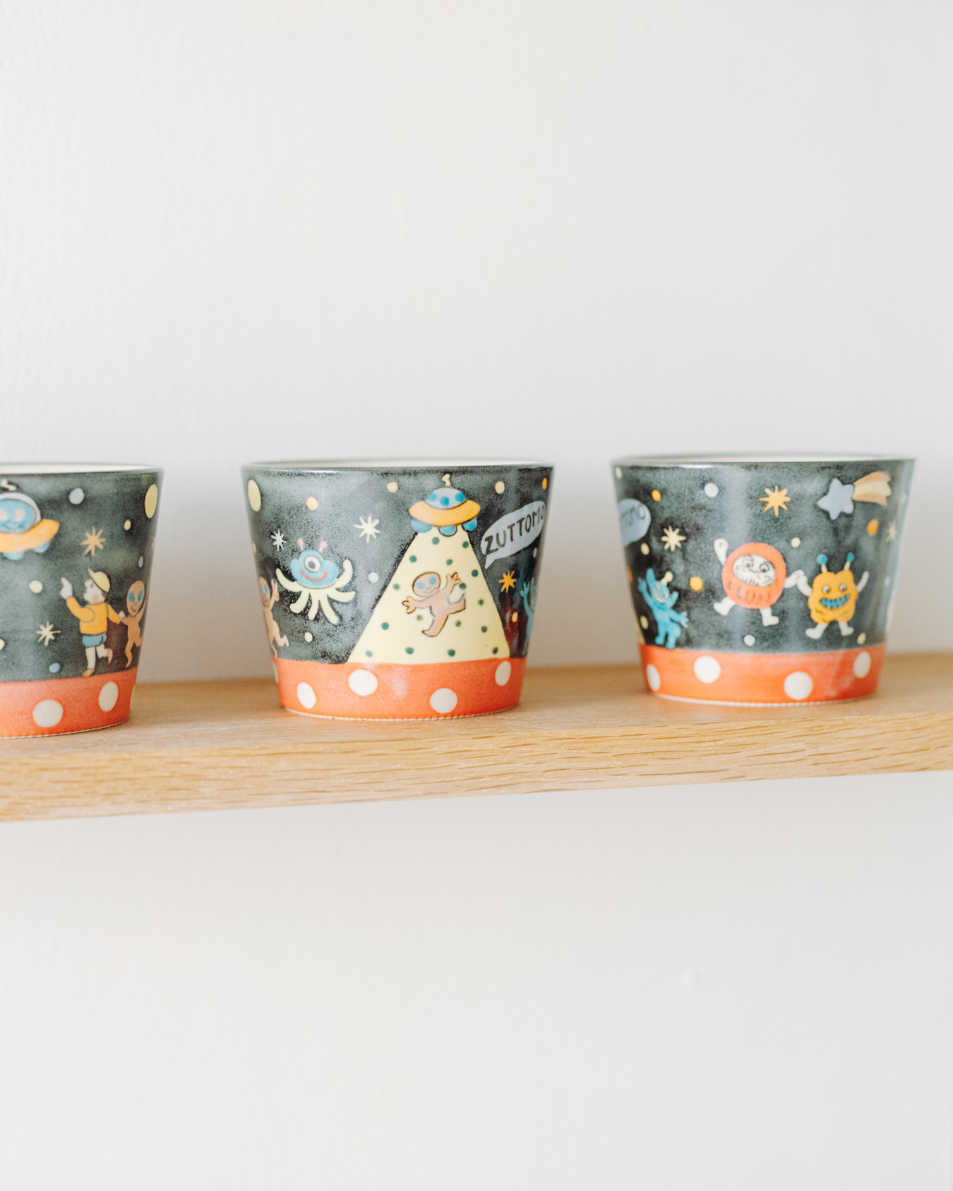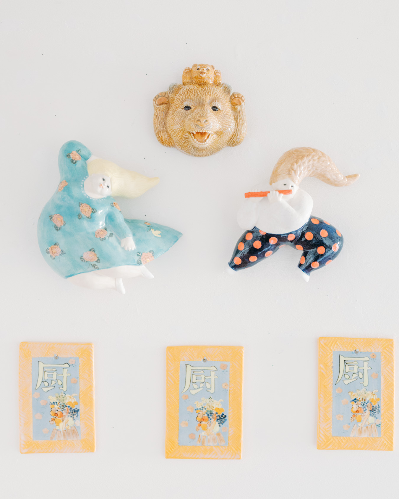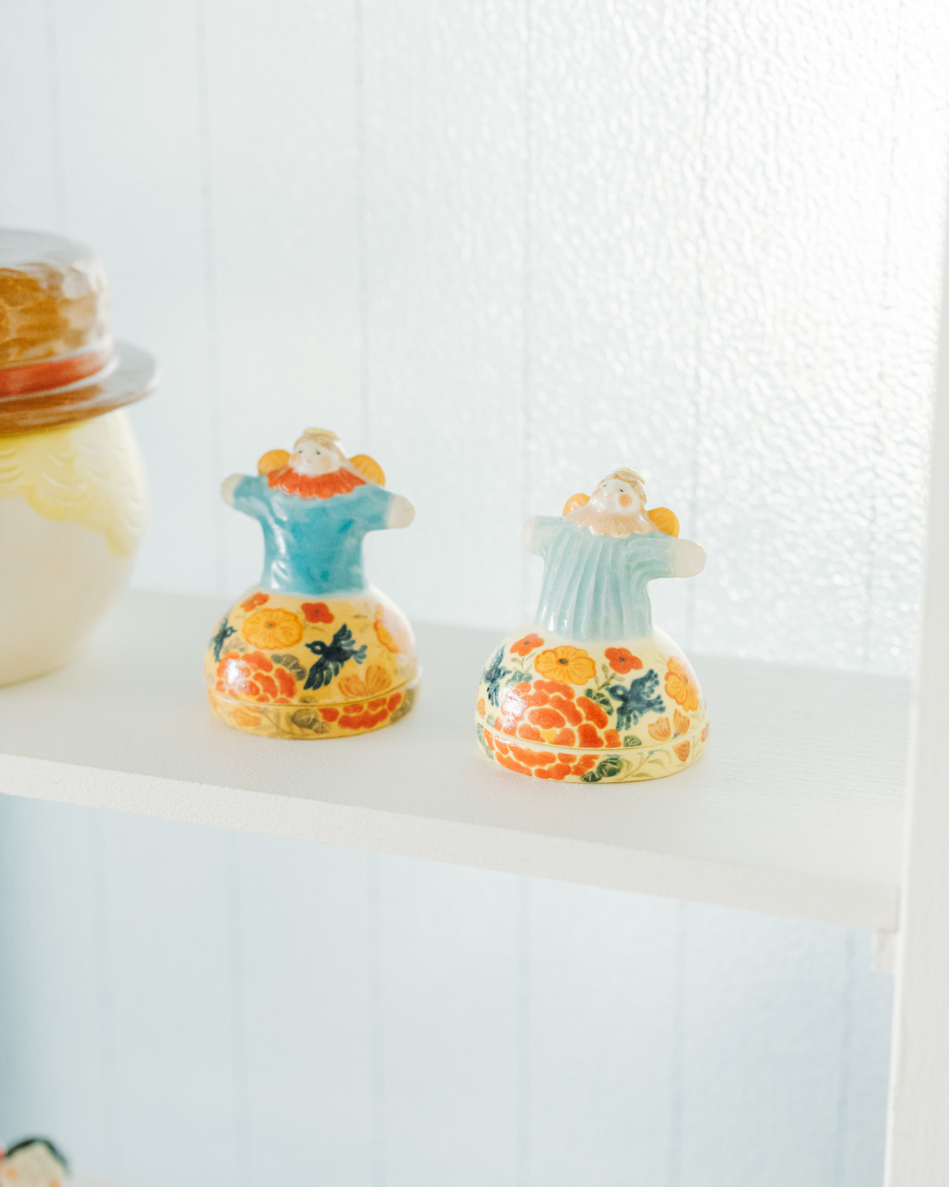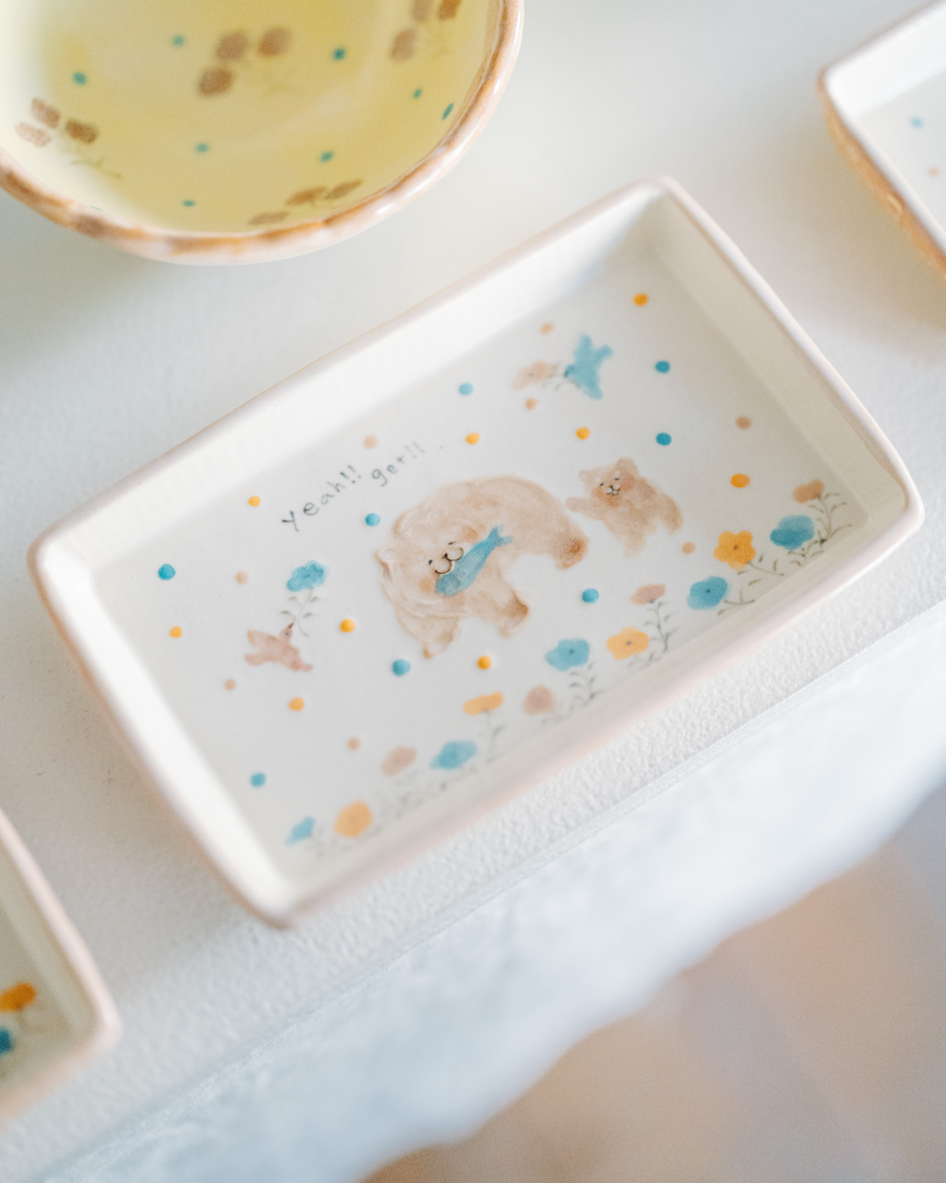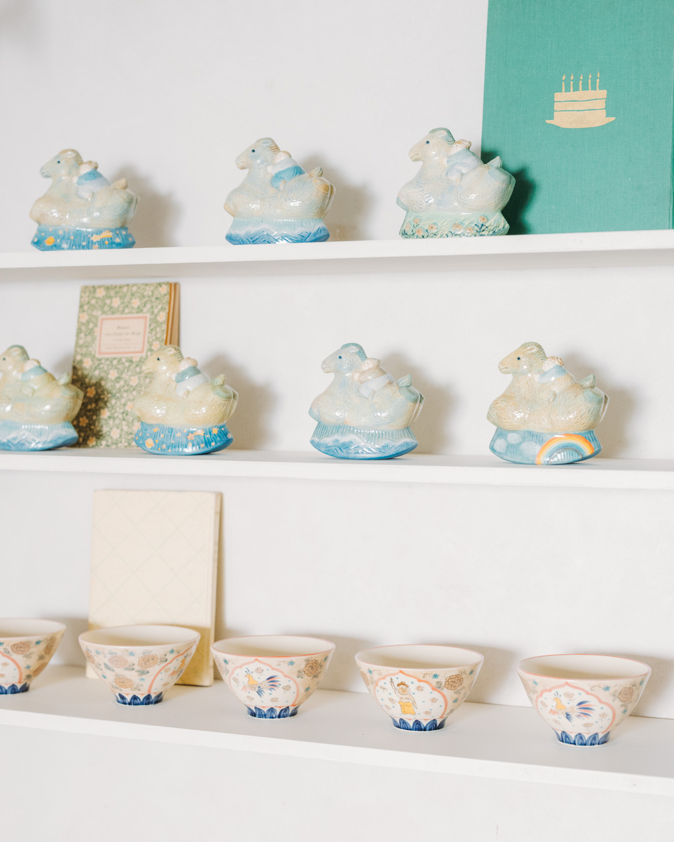 やさしさとユーモアにあふれたオブジェ、お皿、小箱などが並び、