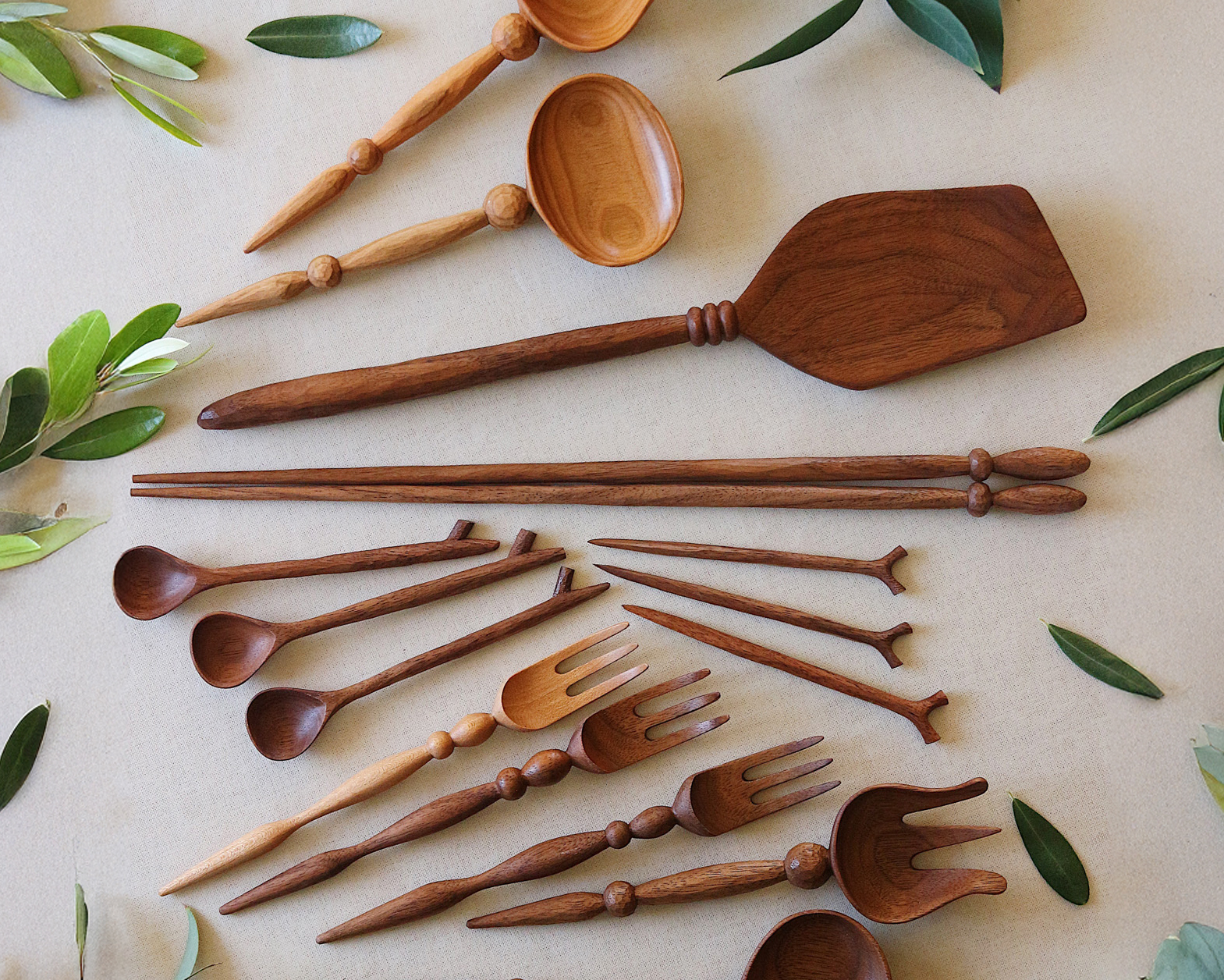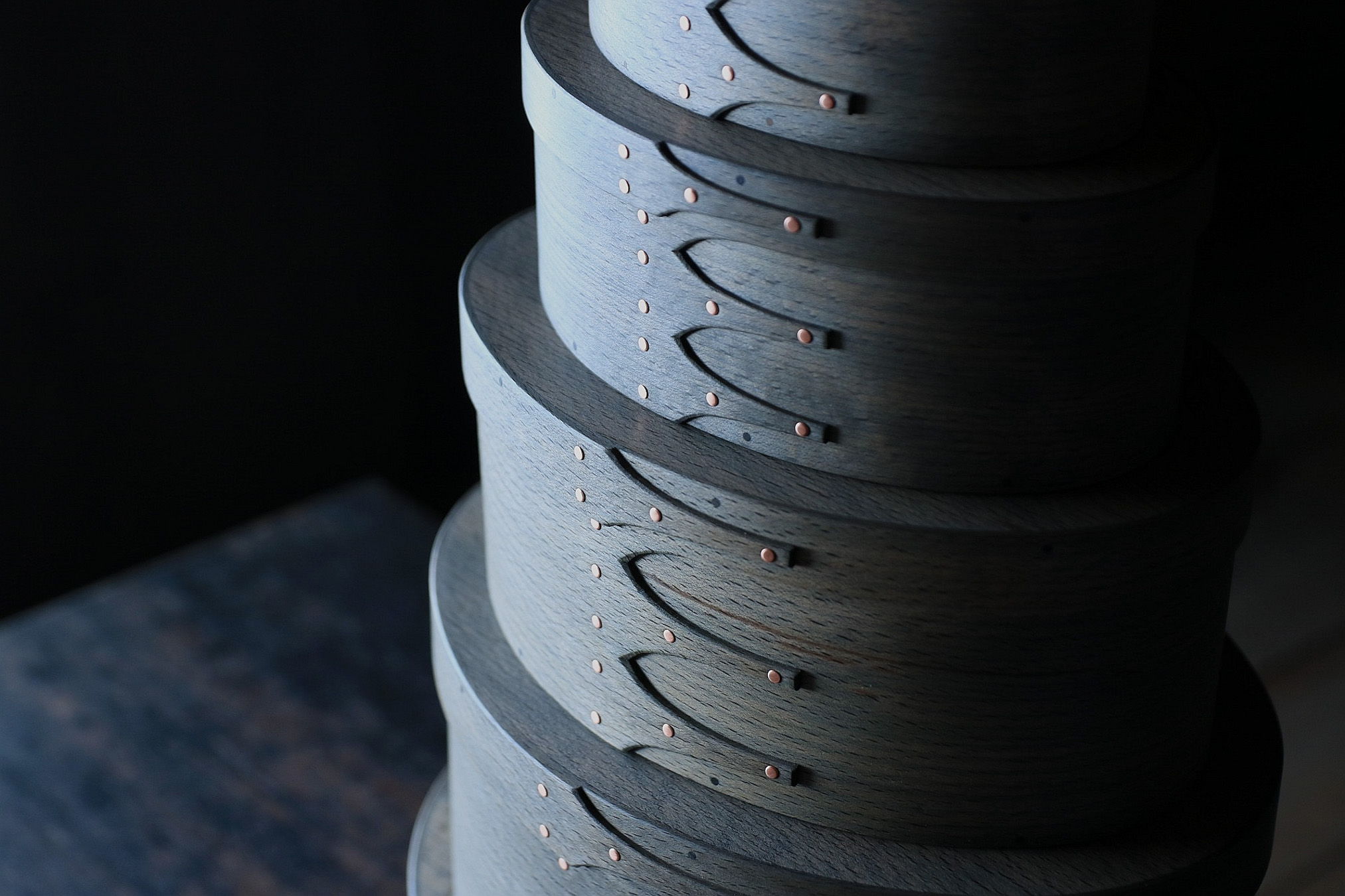 量感を良くするために細やかな凹凸を入れるモールディング加工や、自然染色を施すことにより、古道具を思わせるような木の器を制作しています。