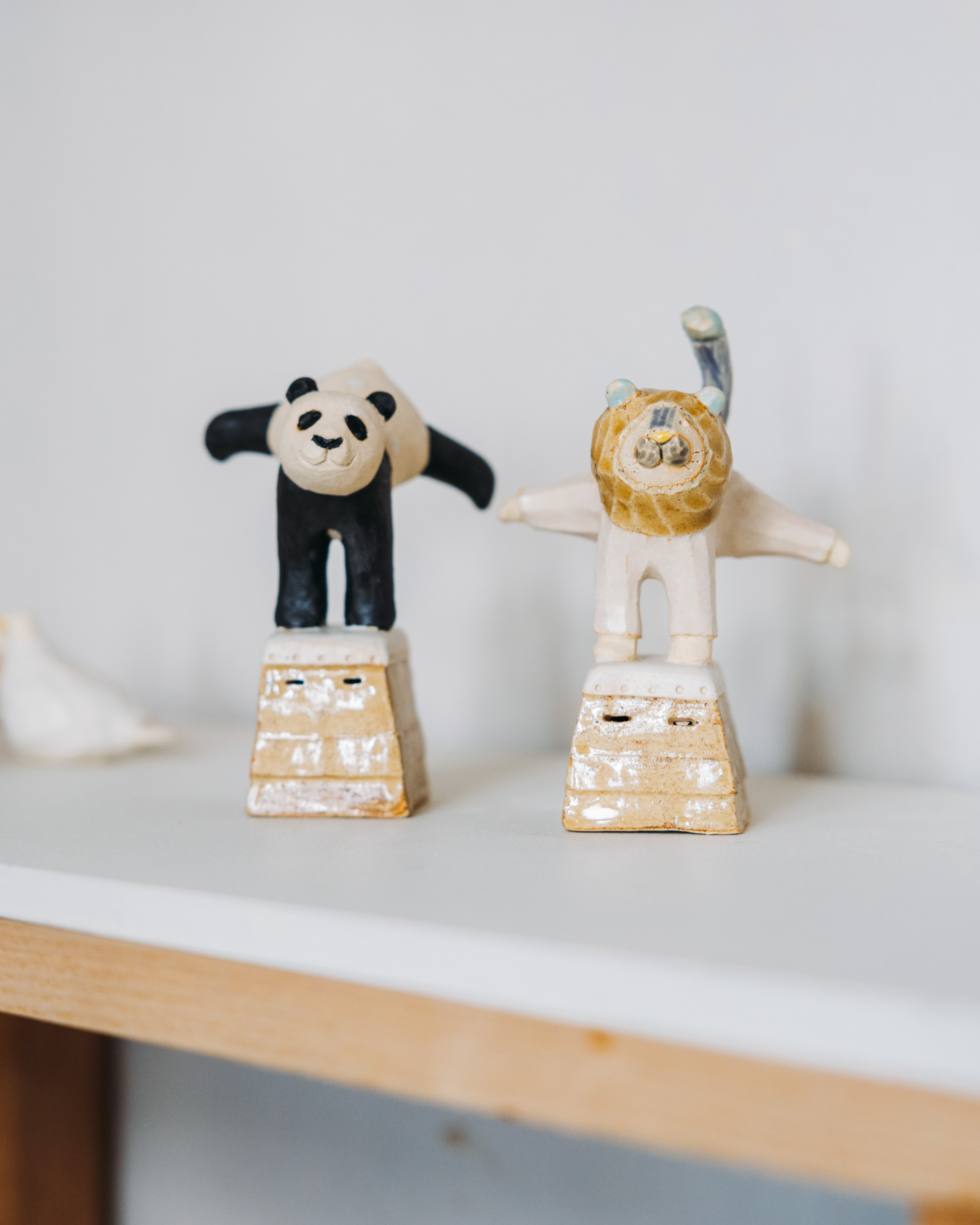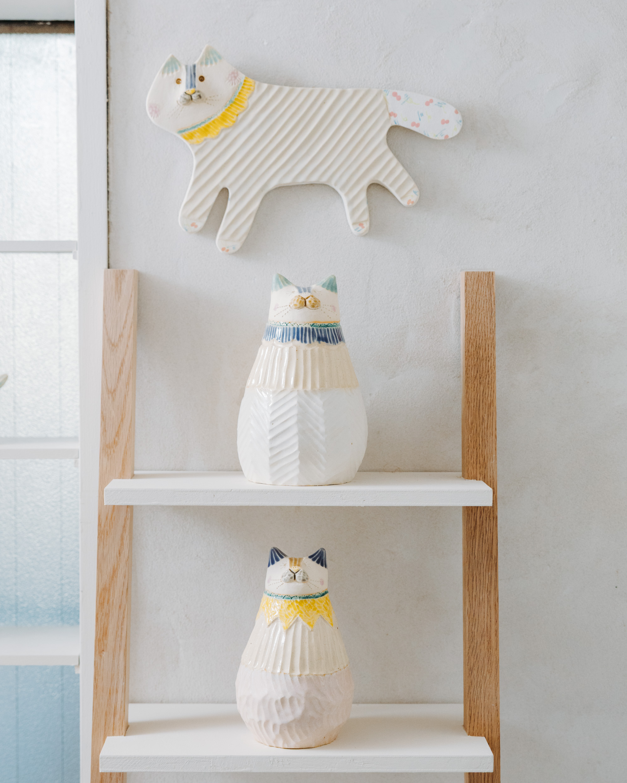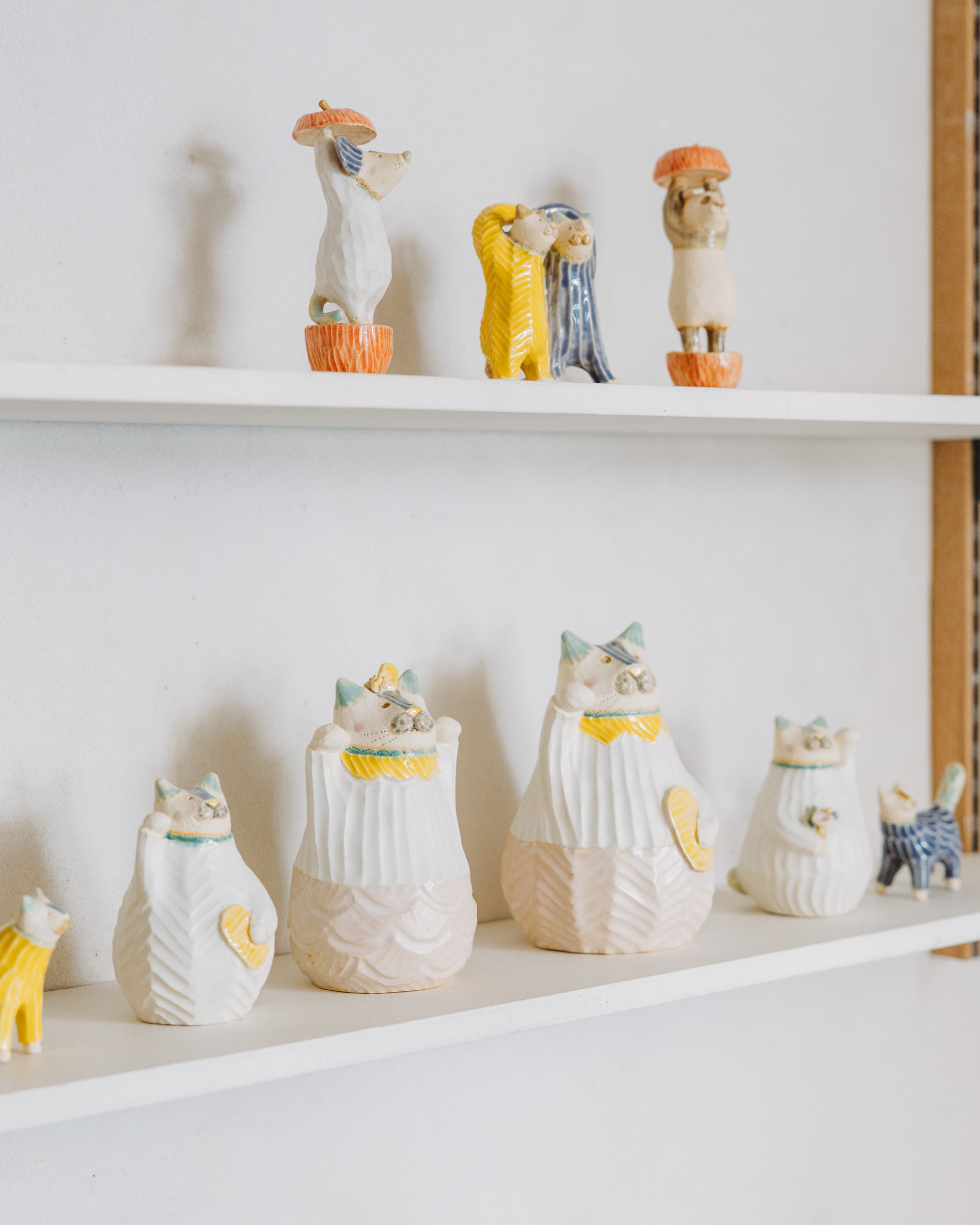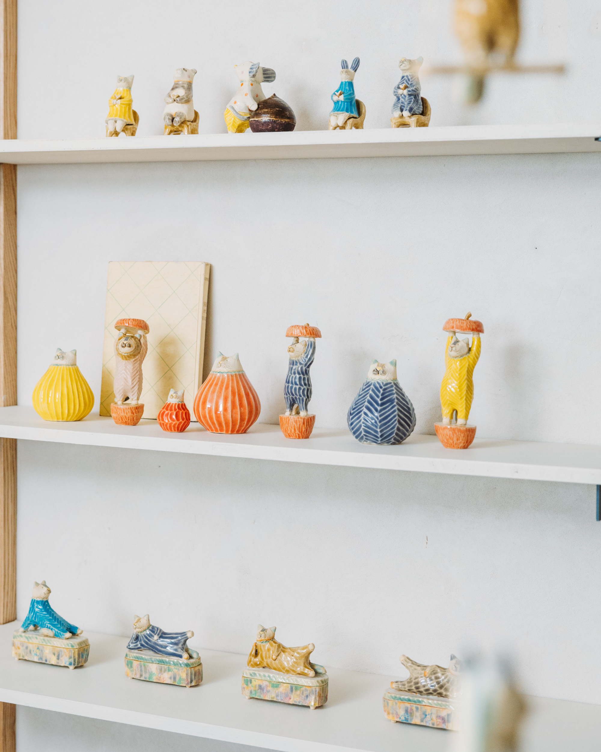 どこかユーモラスで、ほのぼのとした空気をまとった陶の作品たちが並びます。