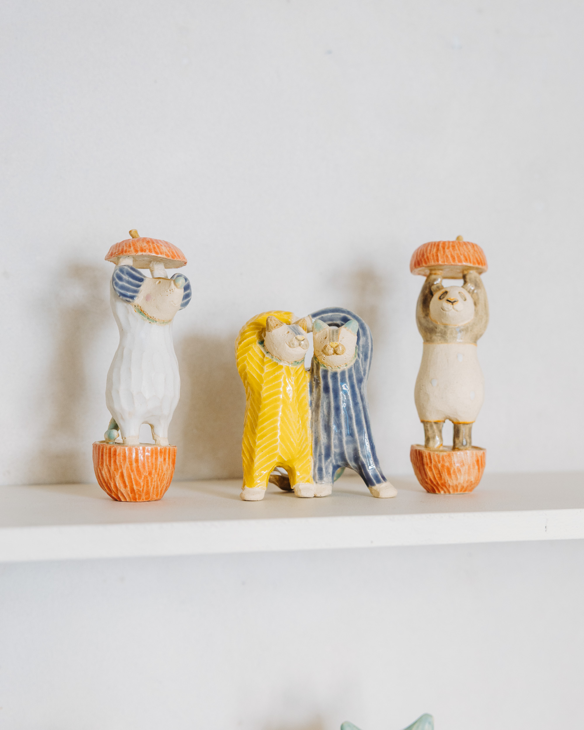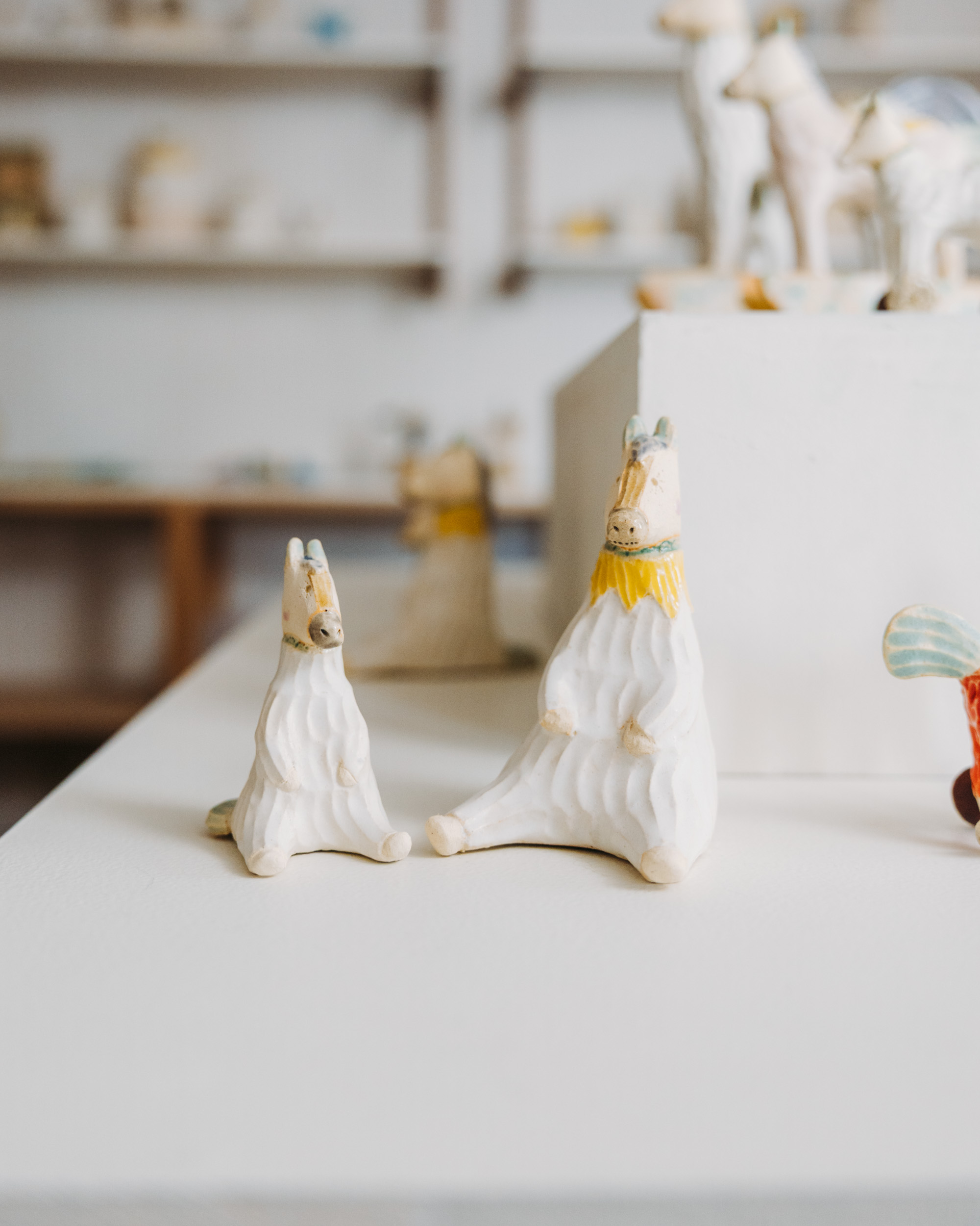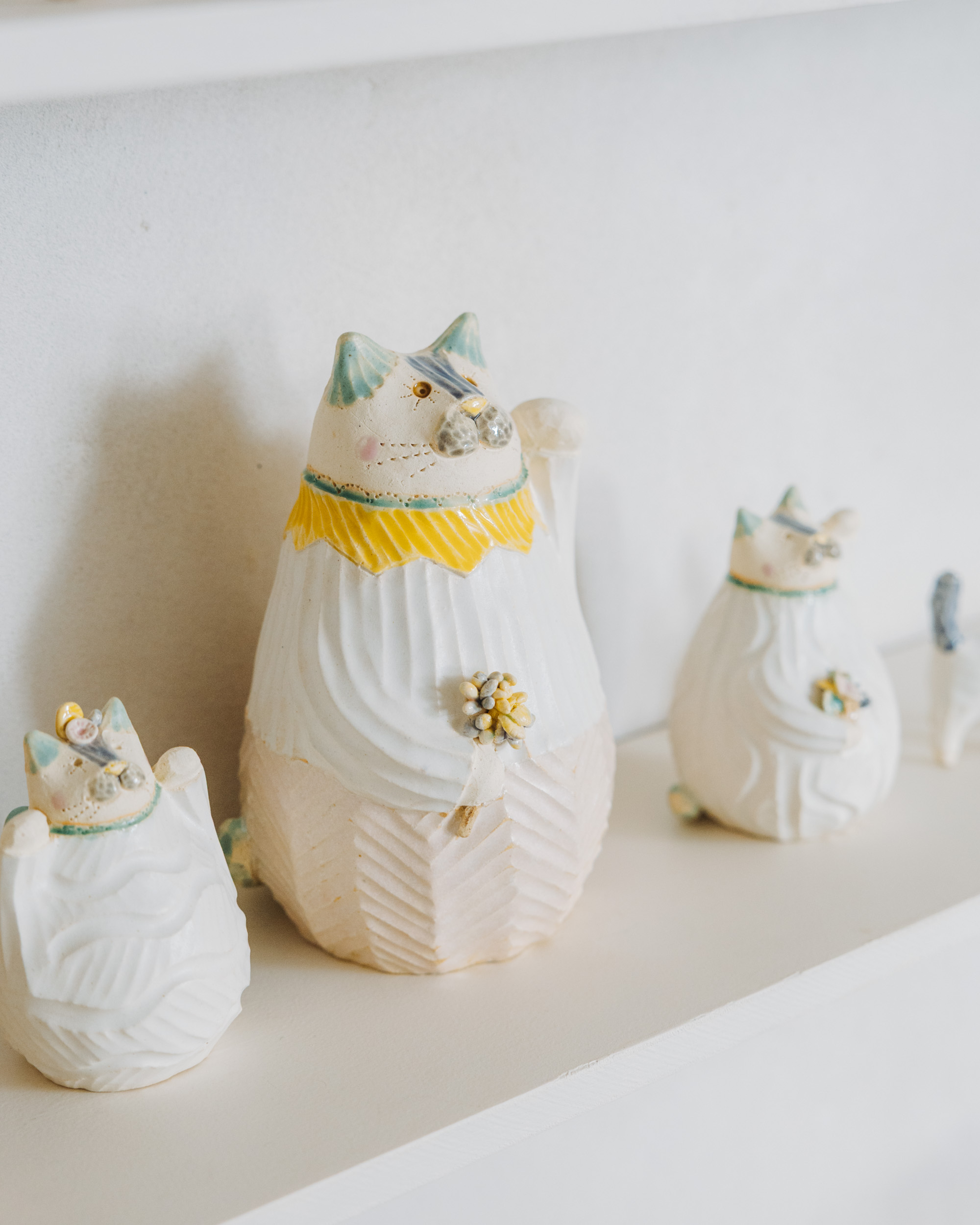 どこかユーモラスで、ほのぼのとした空気をまとった陶の作品たちが並びます。