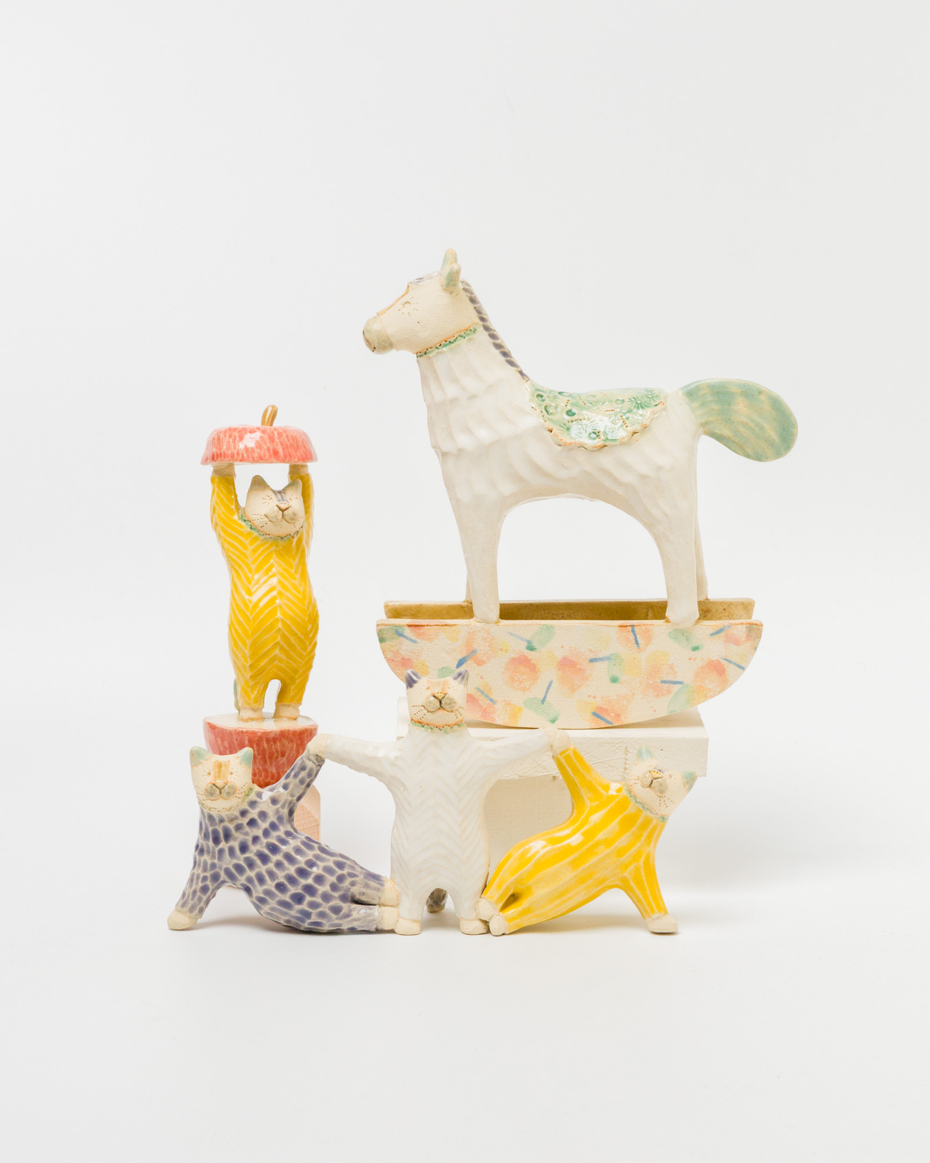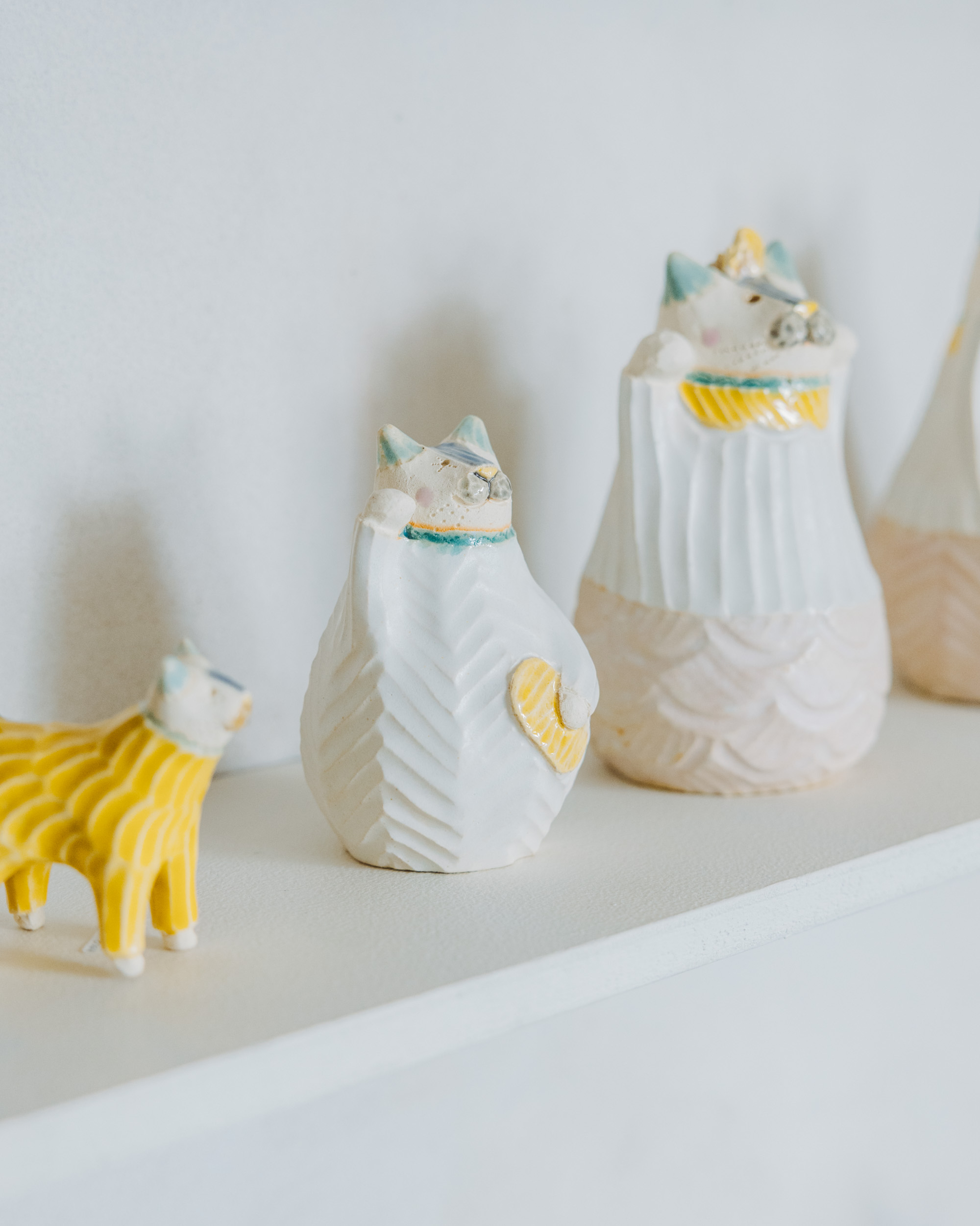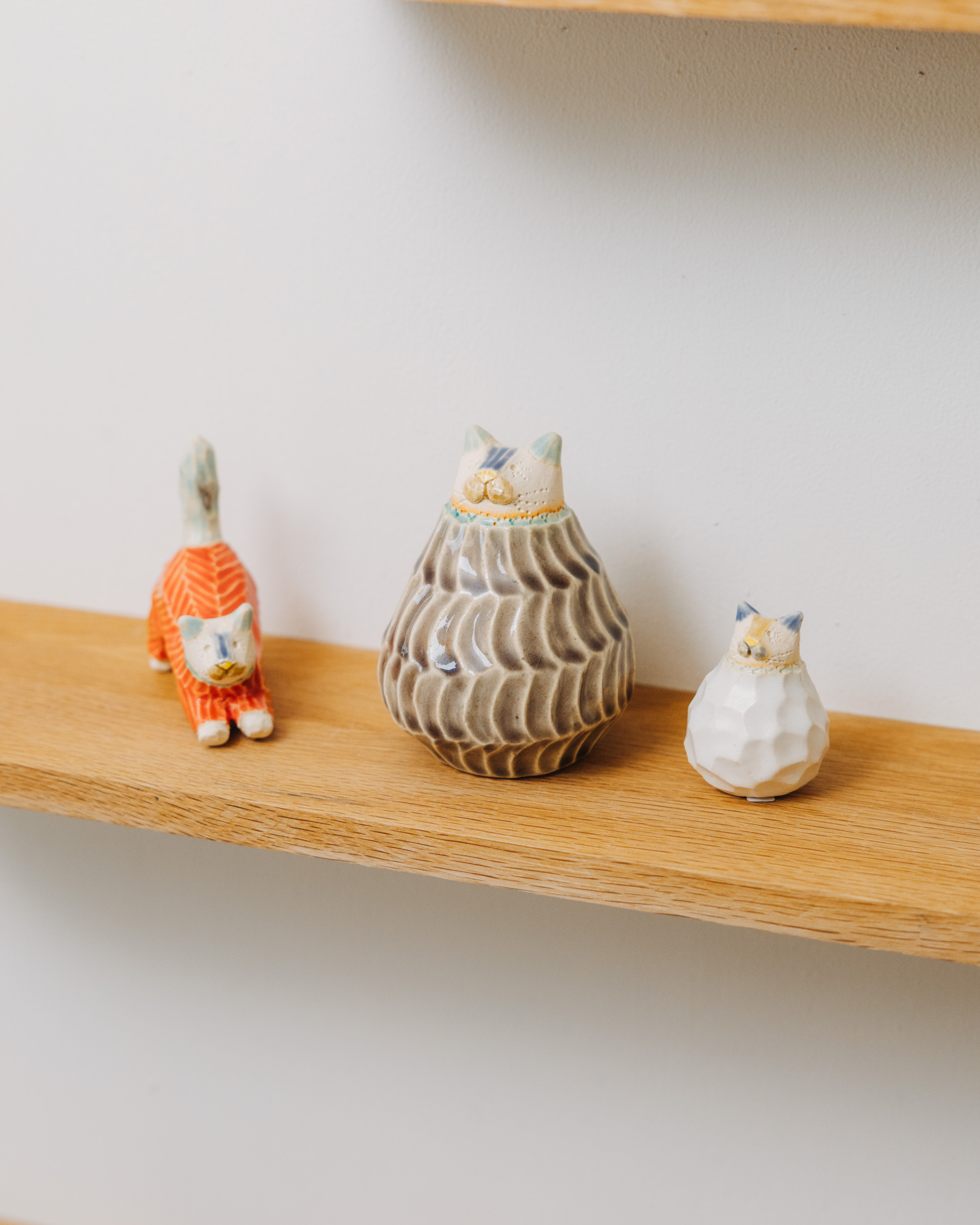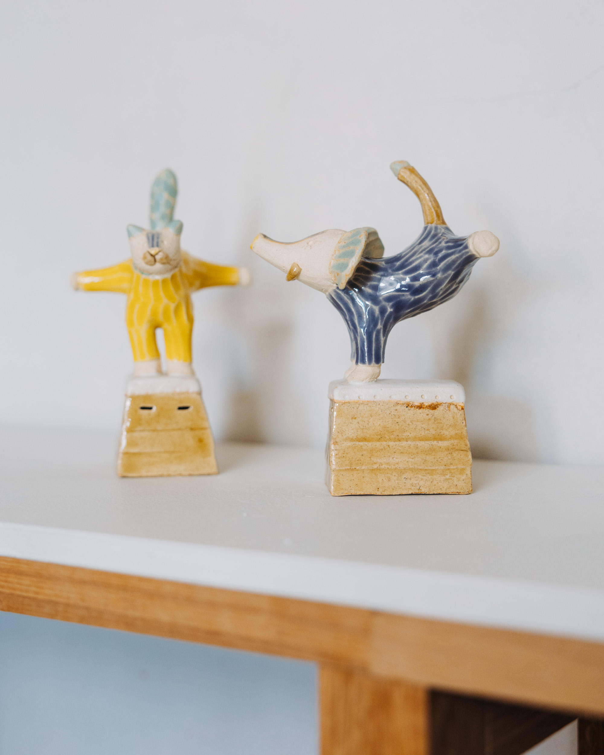 どこかユーモラスで、ほのぼのとした空気をまとった陶の作品たちが並びます。