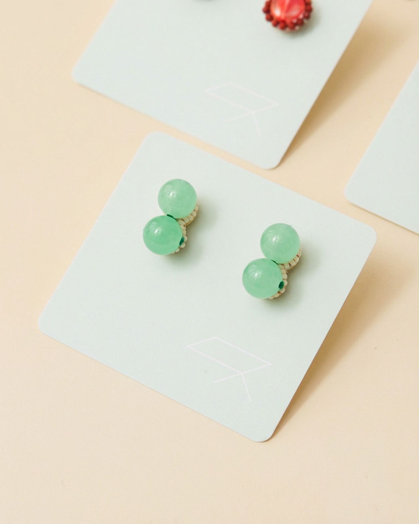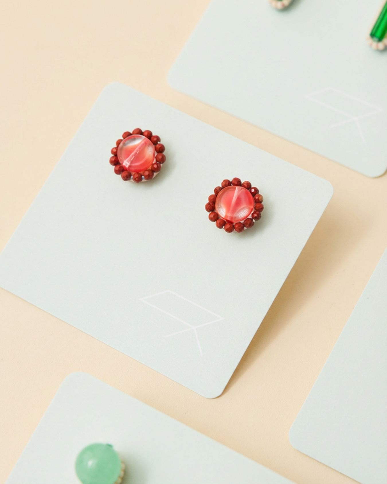 どれも小ぶりで着けやすいサイズ感ながら、美しい色彩とつややかな質感が、日常の装いに静かな存在感と上品な彩りを添えてくれます。